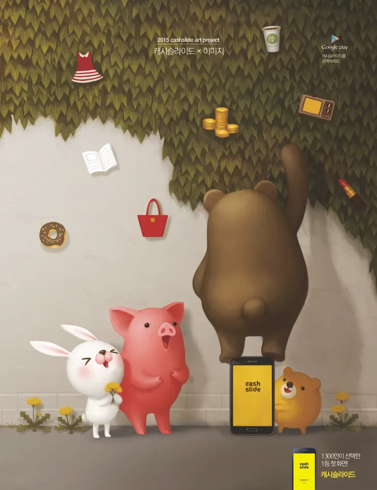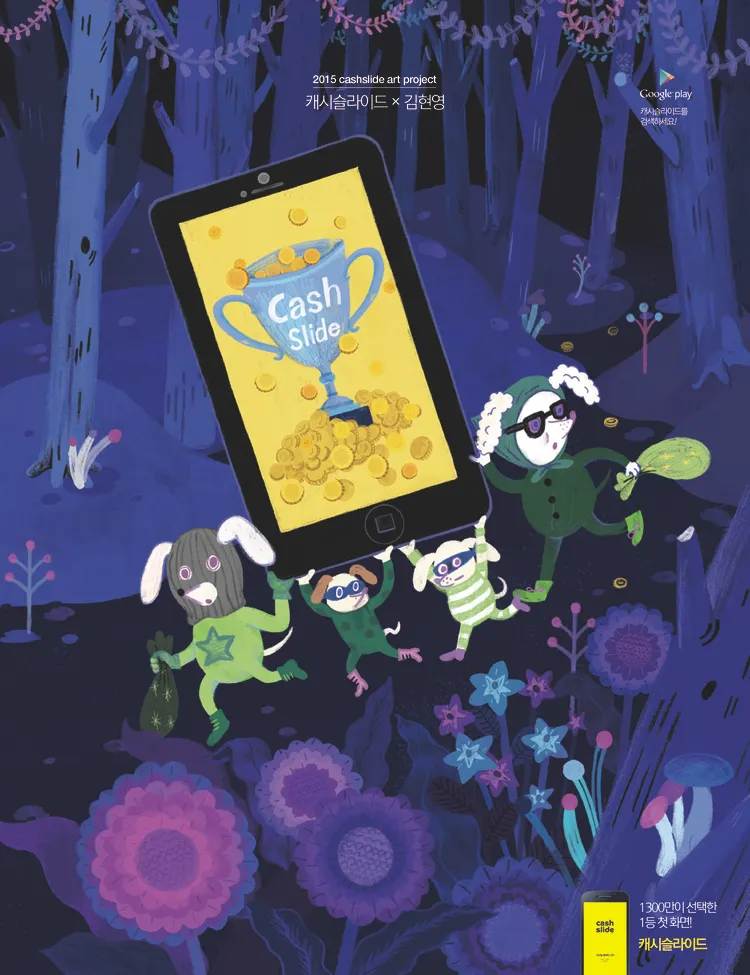 2015년 매월 총 12명의 작가와 함께 캐시슬라이드를 주제로 색다른 일러스트를 선보였다. 일러스트 작가들과의 콜라보를 통해 첫 화면 플랫폼의 다양성을 전달하고, 당시 1,000만 명이 사용하는 첫 화면에 일러스트 작가를 소개하는 기회를 제공하려는 목적으로 진행했다.