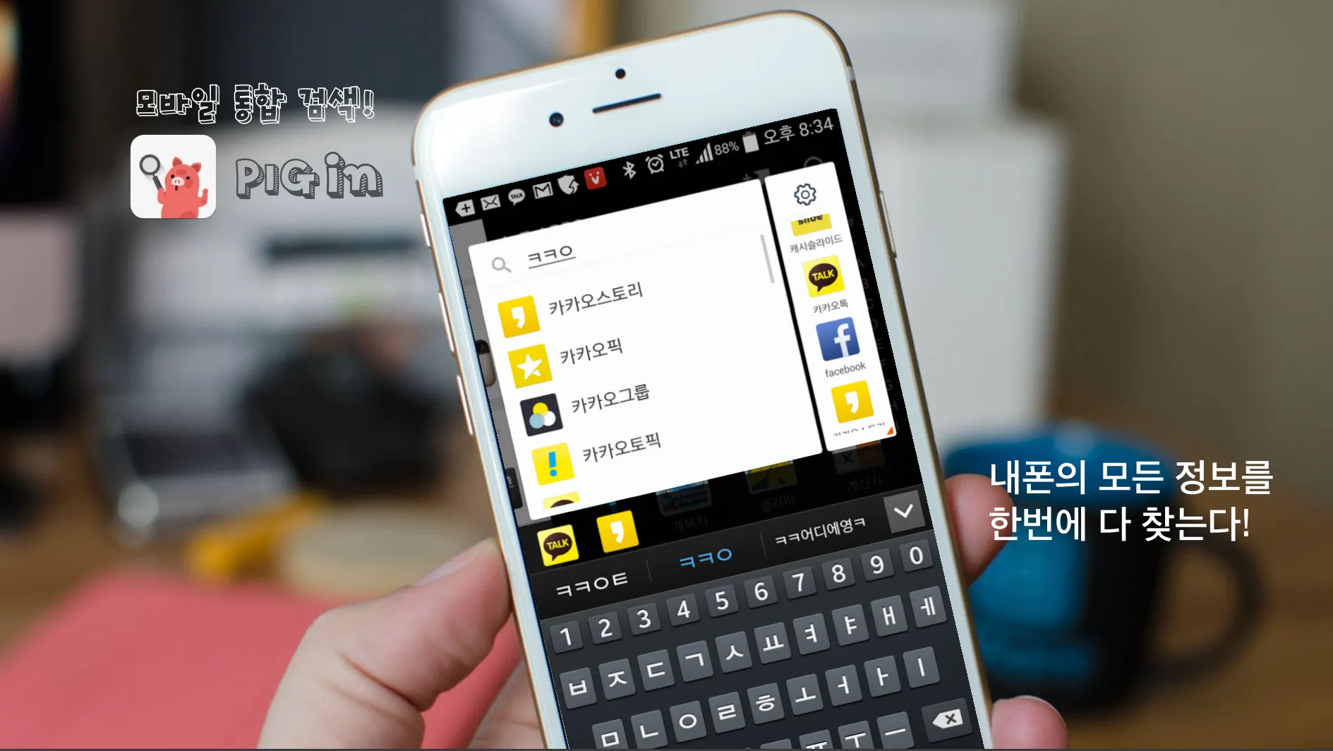 ‘피그인’은 2015년 12월에 런칭한 모바일 통합 검색 서비스다. 2014년에 도입한 ‘IDEA INBOX(사내 스타트업 프로그램)’을 통해 아이디어가 제안되고 실제 제품 출시까지 이어졌다. 스마트폰의 사용 빈도가 높아짐에 따라 저장된 정보(앱, 웹검색, 연락처 등)이 많아지면서 앱 내에서 통합된 검색 기능이 필요해졌다. 초성 검색 등 간단한 조작을 통해 빠르게 정보를 찾을 수 있는 서비스를 제공하고자 했다. 약 한 달만에 개발 및 출시되었다.